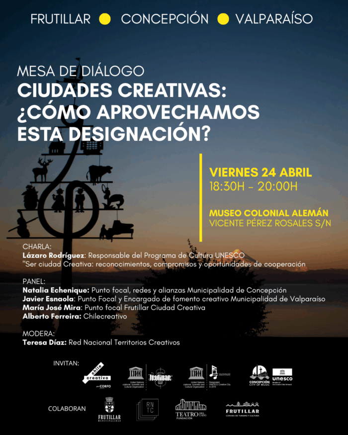- La actividad, que se extenderá durante dos jornadas, incluye espacios de diálogos entre puntos focales de Valparaíso, Concepción y Frutillar, además de invitados en representación de UNESCO, Chilecreativo y la Red Nacional de Territorios Creativos.
